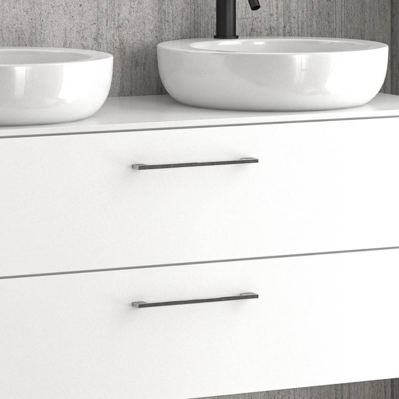 Mobile da Bagno Kamalu EL-120P 120cm a Pavimento con 2 Cassetti e Piano in Legno Massello per Lavabo