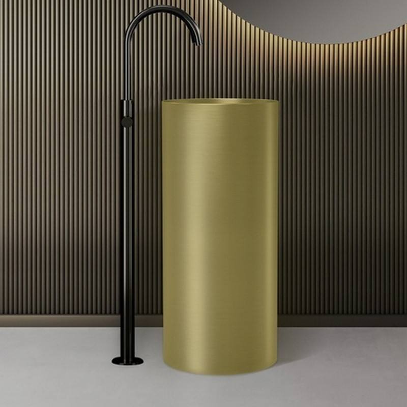 Kamalu Gold Finish Freestanding Cylindrical Sink Side Drainage Modern Traditional Design Natural Stone Marble for Hotels