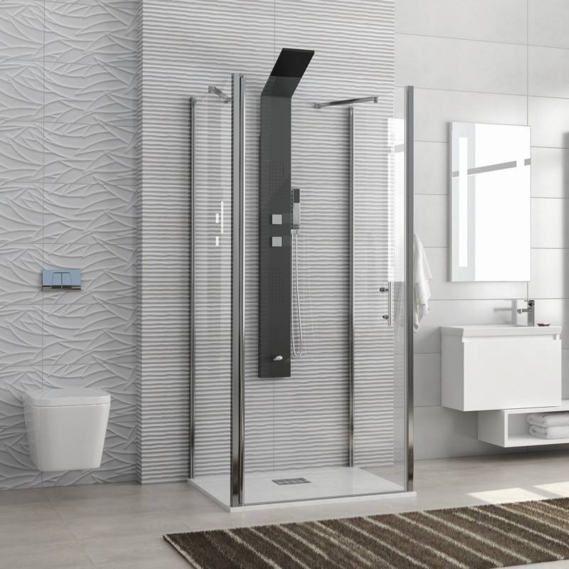 Kamalu K2800AS2 Moderna Cabina Doccia a Tre Lati Senza Telaio con Porta a Battente 90x75x90 Pieghevole in Acciaio Inox e Vetro per Bagno