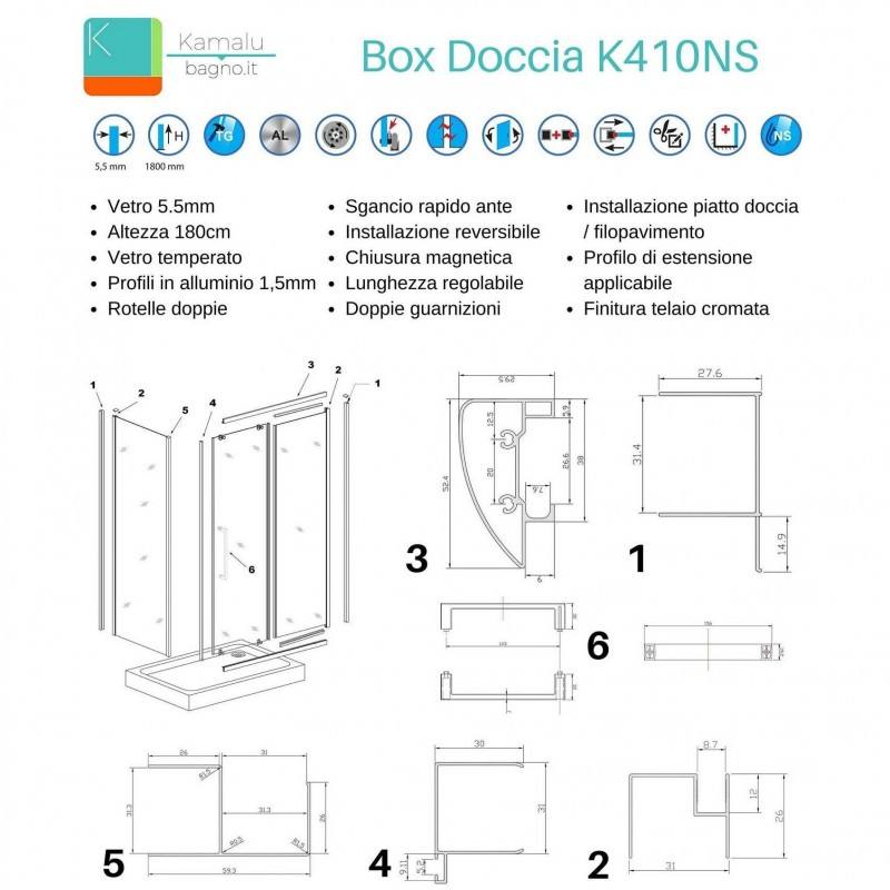 Kamalu K410NS custodia doccia scorrevole su tre lati 90x150x90 serigrafia in vetro senza cornice pieghevole stile aperto per bagno Hotel