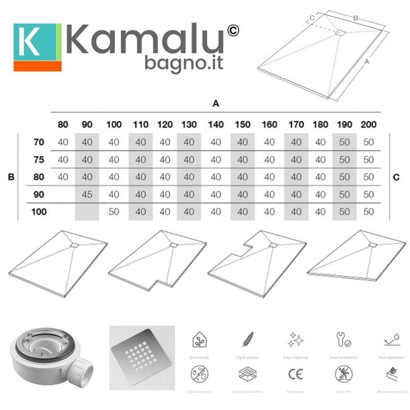 Kamalu KAM-CP100 moderno piatto doccia in pietra 90x140 marmo Beige scuro per alberghi
