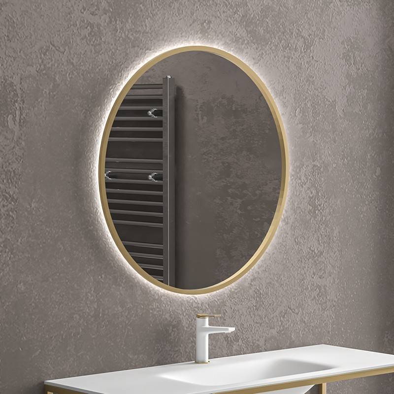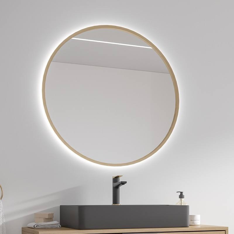 Kamalu KAM-S8000G 80 cm Round LED Backlit Framed Mirror with Gold Frame