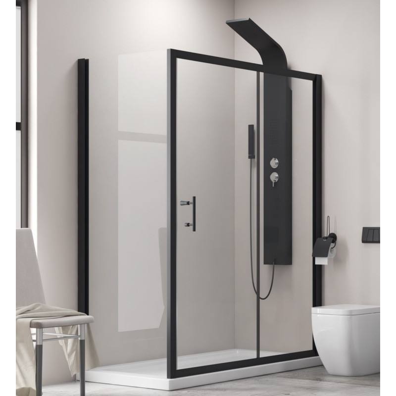 Kamalu KFN5000S moderno 120x70 cm box doccia angolare cornice nera porta scorrevole rettangolo vassoio in alluminio per bagno