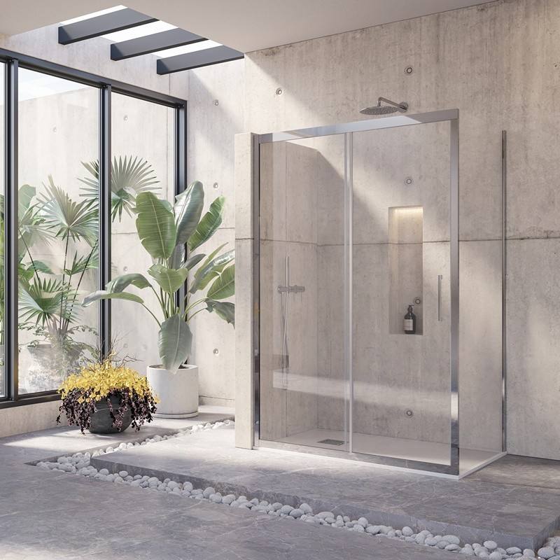 Kamalu KI4000S Porte Doccia Scorrevoli Moderne 130x90 Vetro 8mm con Telaio in Acciaio Materiale Ottone per Bagno
