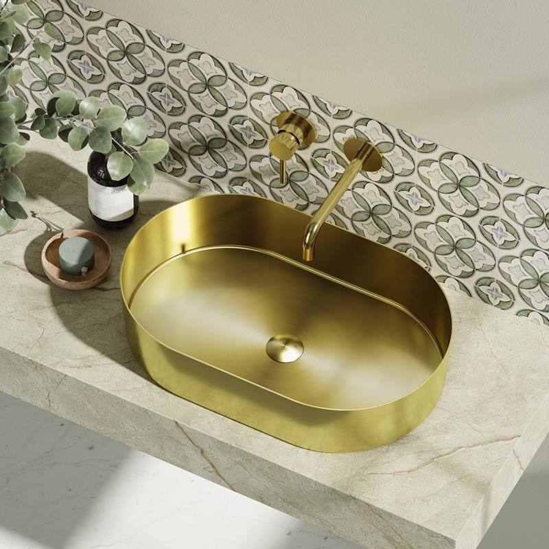 Lavello da Appoggio Kamalu KJ5500G in Acciaio Inox con Finitura Oro Spazzolato per Mobili da Bagno
