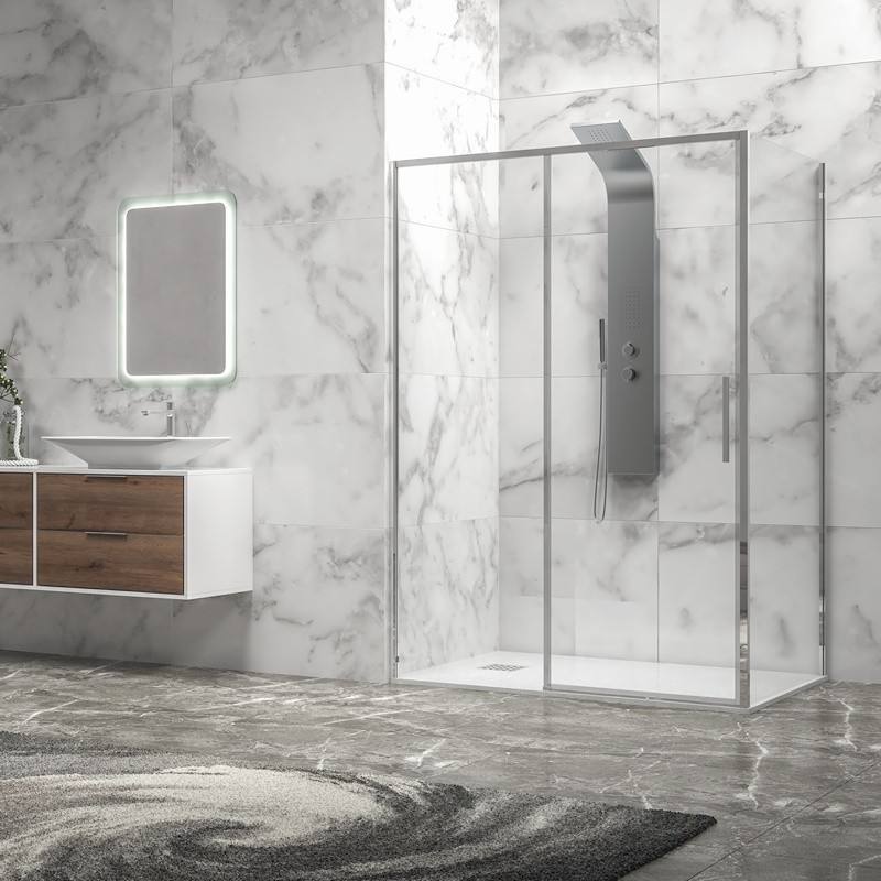 Kamalu KLA-4000C 75x130 Sliding and Fixed Shower Doors 6mm Glass with Frameless 200h Stainless Steel Product Enclosure