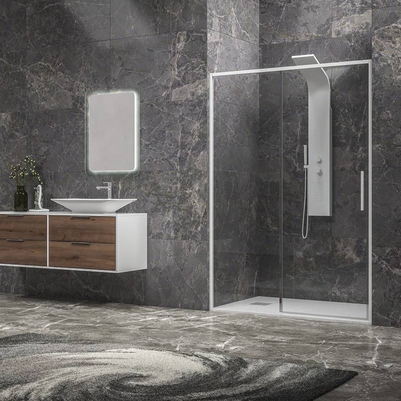 Kamalu KLA4000B Porta Doccia Scorrevole Moderna 130 cm Colore Bianco Vetro 6 mm Altezza 200h Telaio in Alluminio 10mm per Bagno e Hotel