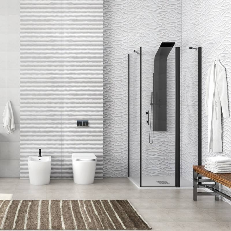 Kamalu KPX2800N 70x115cm Shower Enclosure Black Finish Hinged Fixed Stainless Frameless Door Folding Open Style for Bathroom