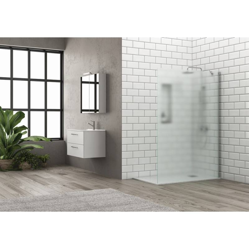 Kamalu KS2800CS Box Doccia Walk-in Senza Telaio 90cm con Vetro Satinato e Piatto Rettangolare con Staffa Diagonale per Bagno