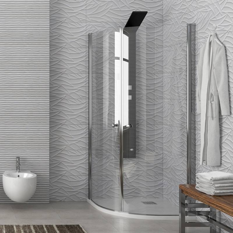 Kamalu KS800K Modern Stainless Steel Semicircular Shower Enclosure 90x90 Frameless with Hinged Doors Full Opening for Bathroom