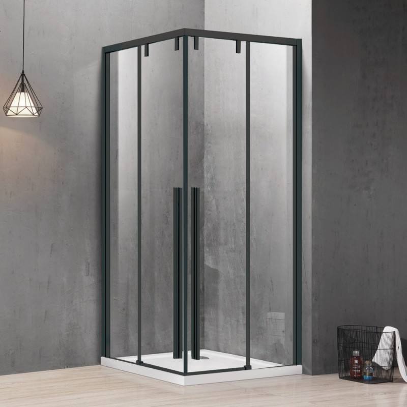 Kamalu KSA1000B 70x70 box doccia doppio scorrevole nero 8mm vetro Frameless con telaio in acciaio inox stile pieghevole per alberghi