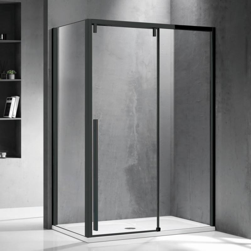 Kamalu KSA5000B Cabina Doccia Moderna 80x130mm Telaio Nero Porta Scorrevole in Acciaio Inox con Lato Fisso per Bagno Hotel Villa Pivot