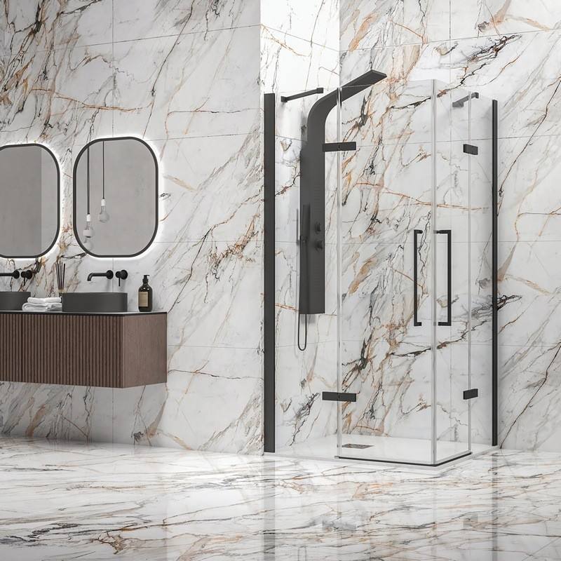 Box Doccia Kamalu KT1000N Nero Opaco 70x130 Senza Telaio in Alluminio Vetro 8mm Rettangolare Dritto Impermeabile per Bagno