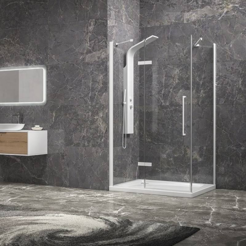 Kamalu KT5000B 70x70 Box Doccia a Battente Bianco Senza Telaio in Alluminio con Cerniere Pieghevoli per Hotel e Ville, Vetro Temperato