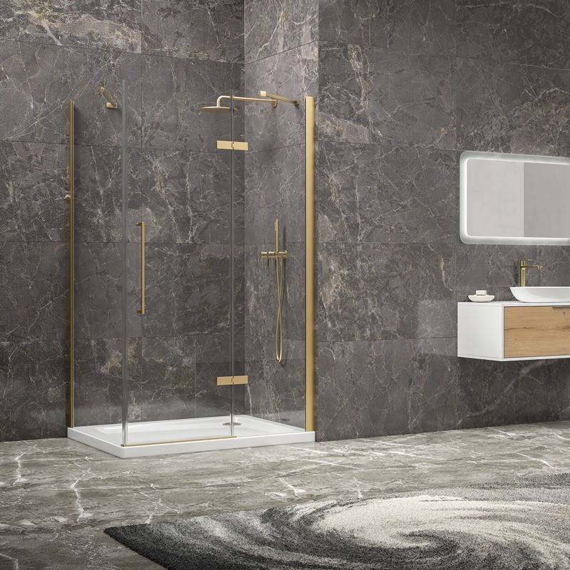 Kamalu KT5000G Moderna Cabina Doccia con Porta a Battente 90x140 Oro Satinato, Piatto Rettangolare, Vetro Spesso 8mm, Stile Fisso Apribile