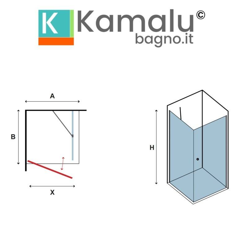 Box Doccia Moderno Kamalu in Vetro Satinato 70x80 con Ante a Battente, Vetro Temperato 8mm, Telaio in Alluminio 200h per Casa e Hotel - KS2800FAO