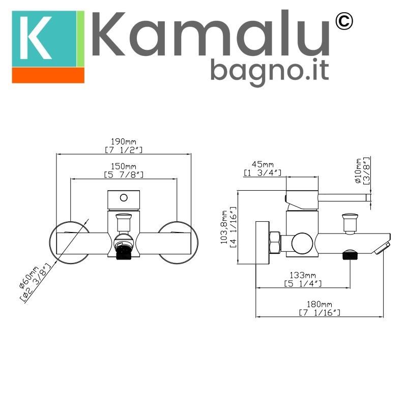 Miscelatore doccia e vasca Kamalu oro rosa con tubo e accessori integrati per il bagno