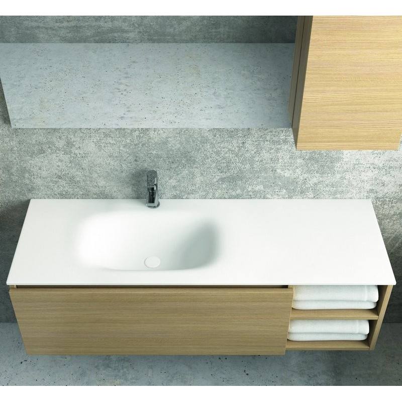 Kamalu SP-135ED bagno vanità con armadio In PVC 135 cm lavabo In ceramica vano aperto sul lavello integrato a destra