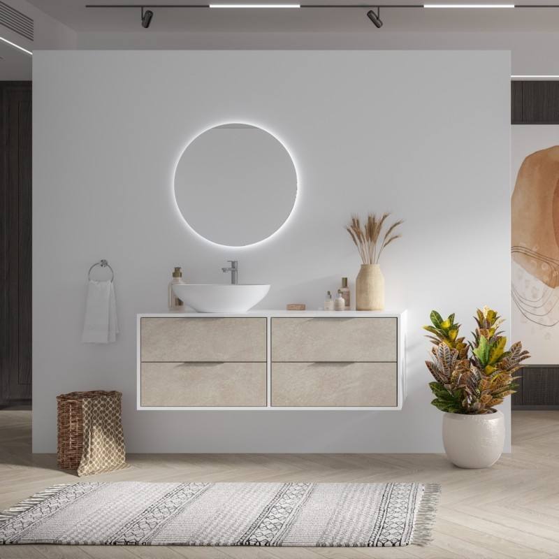 Mobile da Bagno Kamalu SPR-135D 135cm Bicolore con 4 Cassetti Scorrevoli in Legno Massello Resistente all'Acqua con Specchio