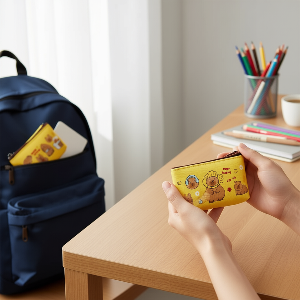 Portamonete Kapibala 11,5x9cm Giallo con Design Cartoon e Portachiavi