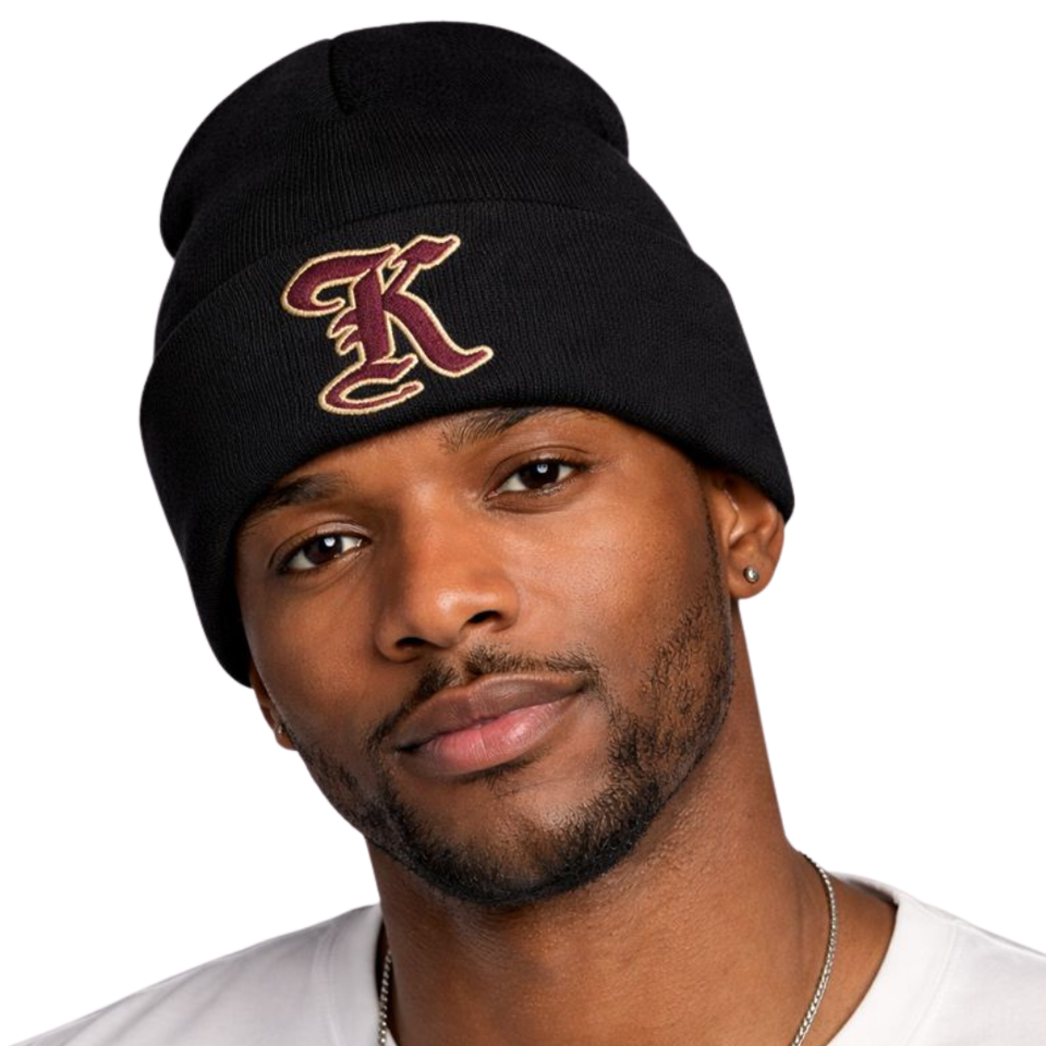 Kappa Alpha Psi Black Chenille Embroidery Old English K Beanie Hat Greek Fraternity Nupe 1911 Winter Knit Cap