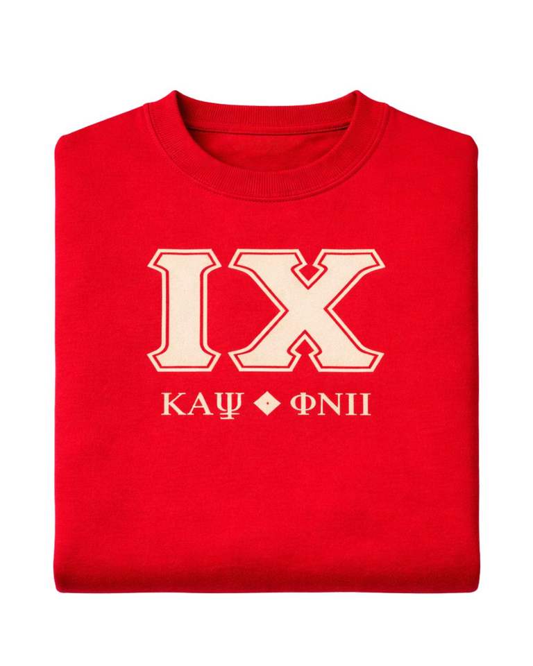 Maglione personalizzato Kappa Alpha Psi in ciniglia, abbigliamento per fraternità greca con lavorazione di alta qualità, stile classico e vestibilità comoda.