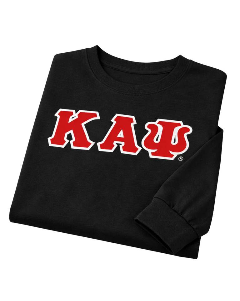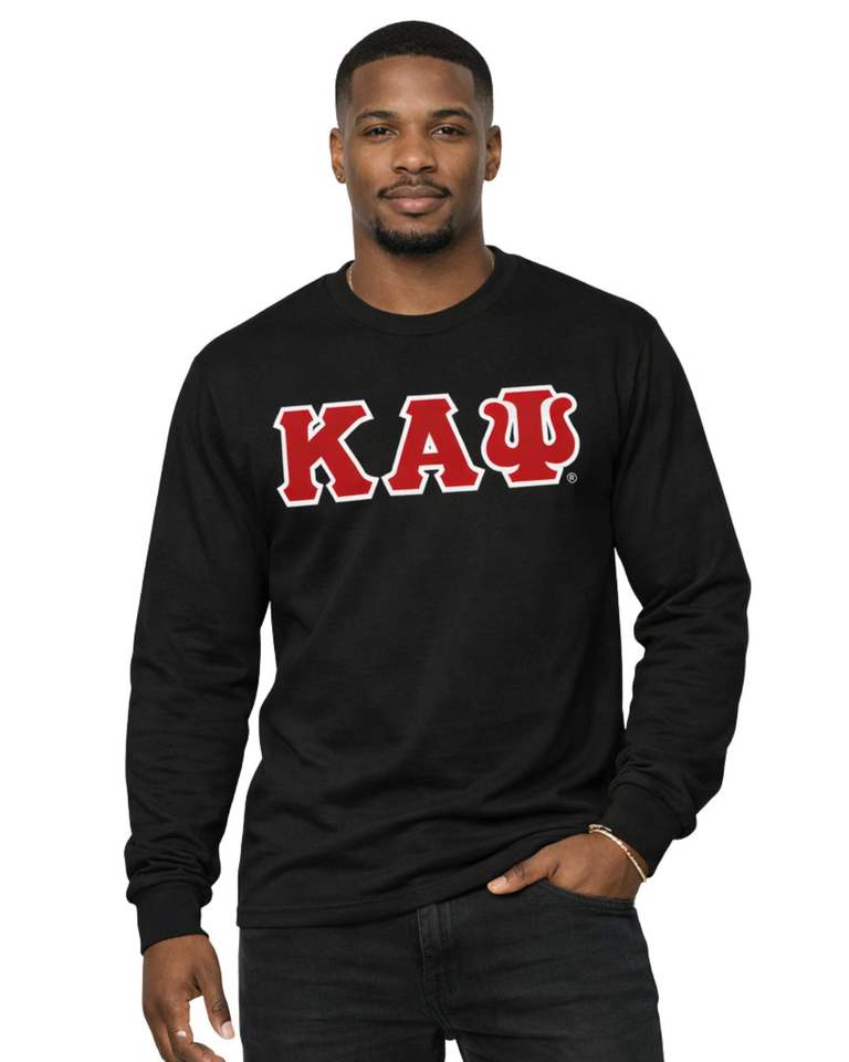 Maglietta a Maniche Lunghe con 3 Lettere Kappa Alpha Psi, Design Vintage Nero, Abbigliamento per Fraternità Greca, Comfort e Stile Premium