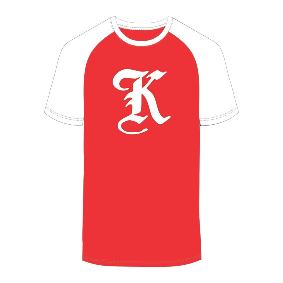 T-Shirt Premium in Cotone con Maniche Raglan e Ricamo in Ciniglia Rossa 'Kappa Alpha Psi' in Stile Old English, Fraternità Greca Nupe 1911