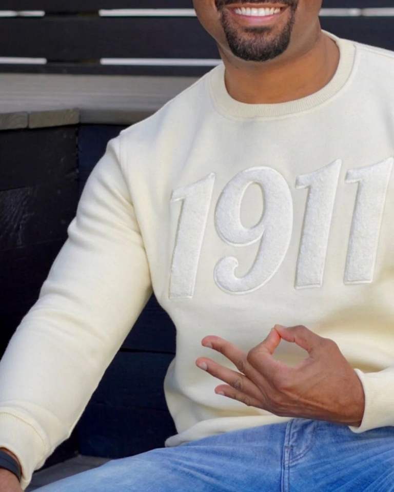 Kappa Alpha Psi Solid 1911 Ivory Chenille Sweatshirt Mens Premium Cotton Crewneck Crimson Greek Fraternity Apparel