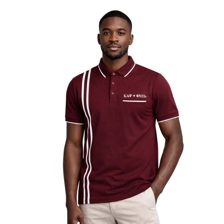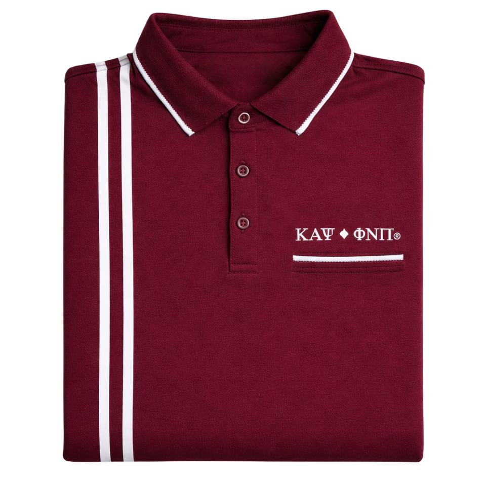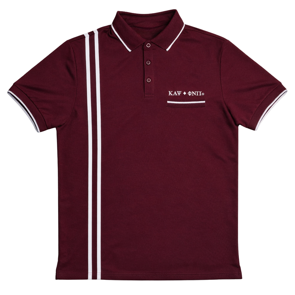 Kappa Alpha Psi Striped Diamond 3 Letter Polo Krimson Greek Fraternity Apparel with Athletic Fit Premium Comfort and Classic