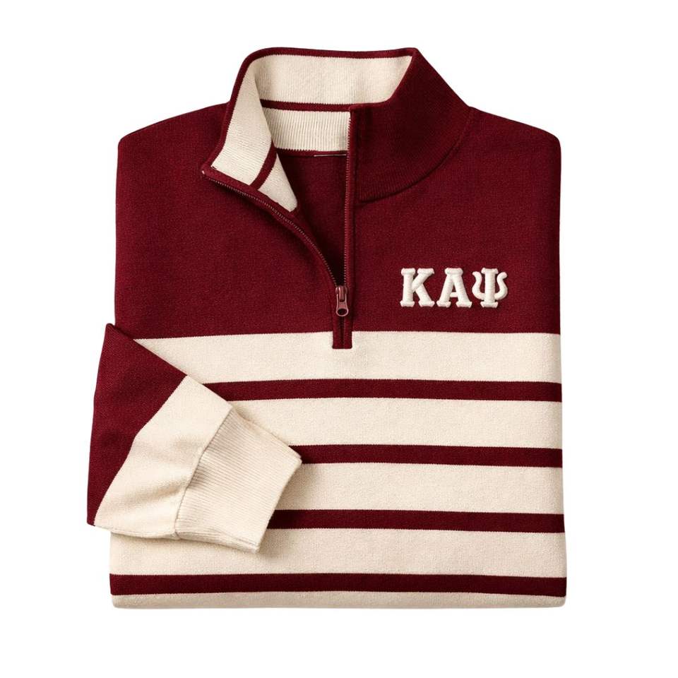Kappa Alpha Psi Striped Quarter Zip Sweater Greek Fraternity Apparel with Classic Design Premium Comfort and Timeless Style
