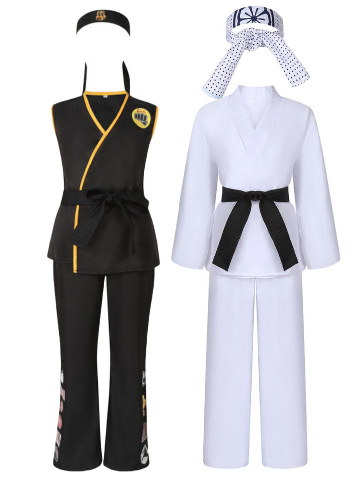 Karate Kids KOF Cobra Kai Cosplay Costume Kid Adult Black White Kimono Uniform Headband Anime Halloween Party Suit Tracksuit