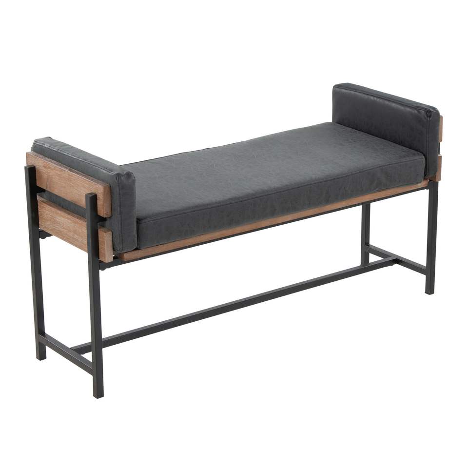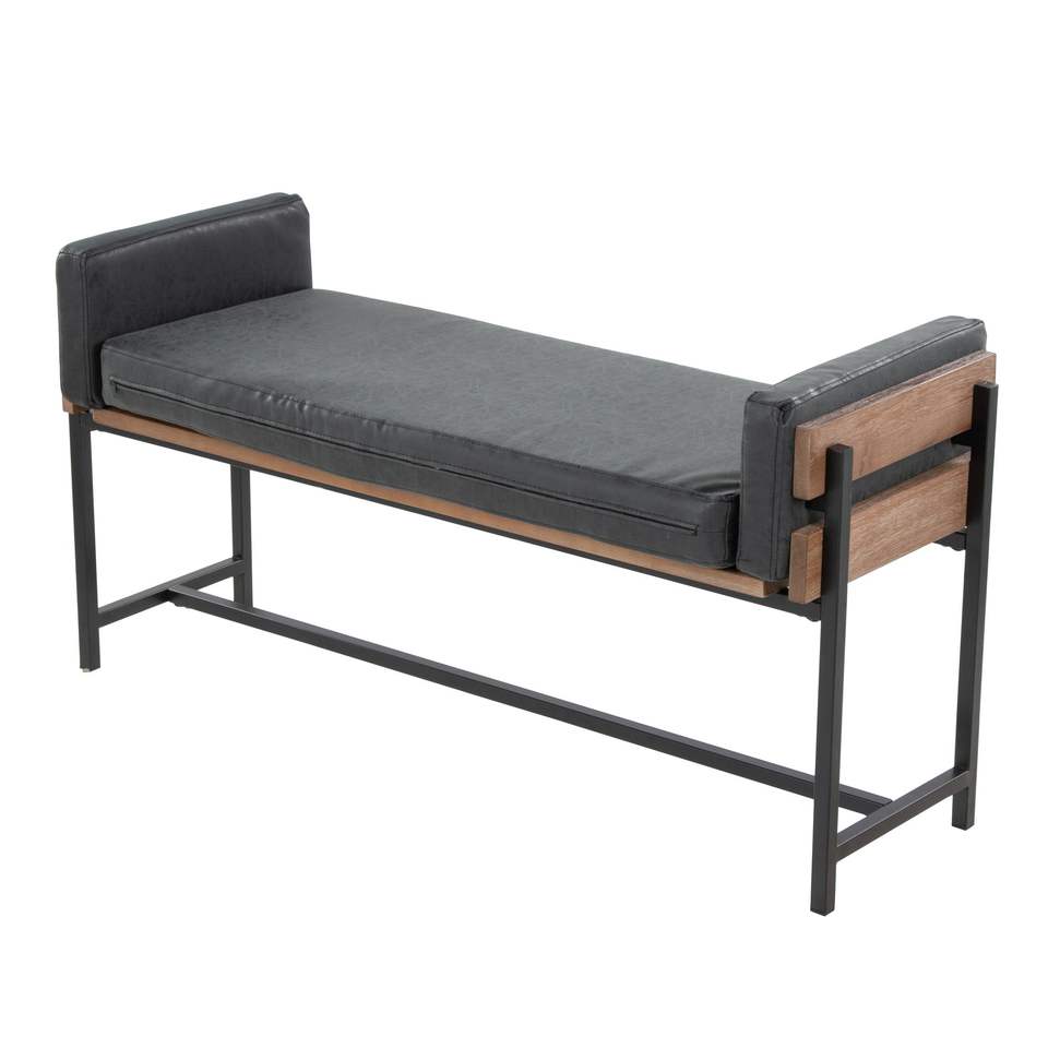 Kari 18\" Farmhouse Bench Brown Wood with Black Metal and Black Faux Leather for Dining Room Furniture
