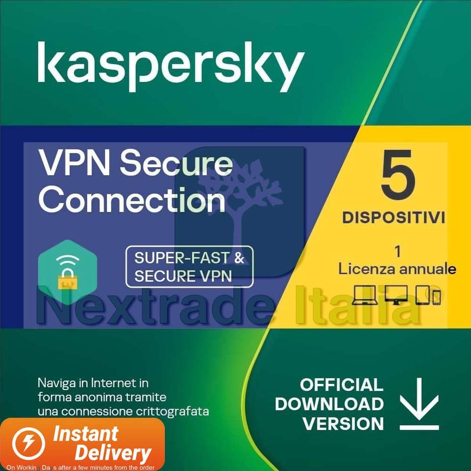 Kaspersky 1 anno connessione VPN sicura per 5 dispositivi (PC Mac Android IOS) ue 2025 Made in Italy
