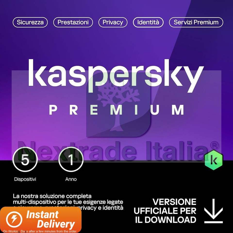 Kaspersky Premium Security per 5 dispositivi (PC Mac Android IOS) protezione informatica generica 1 anno EU