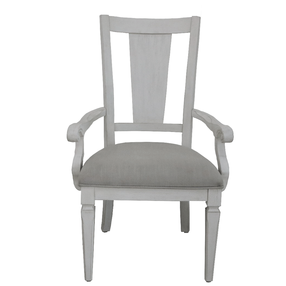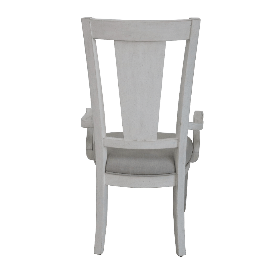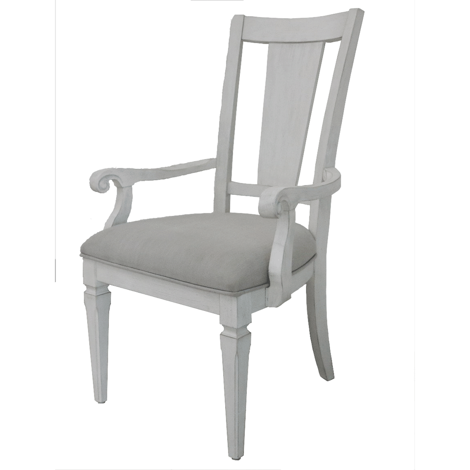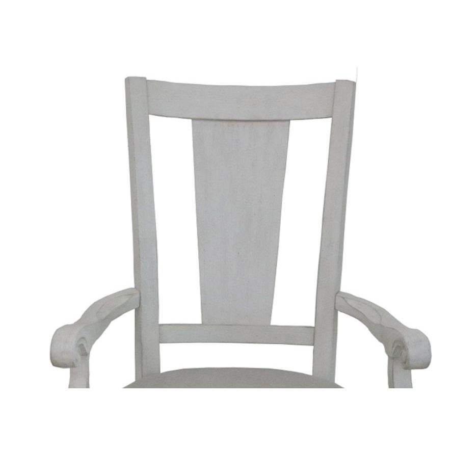 Set di 2 Sedie con Braccioli Katia in Lino Grigio Chiaro e Finitura Bianco Anticato per Sala da Pranzo