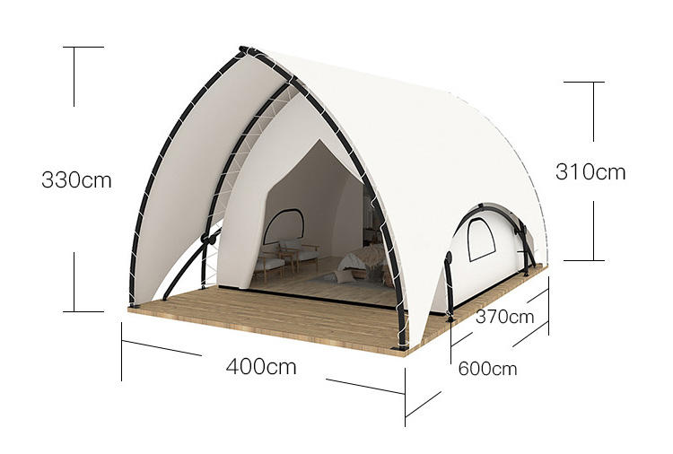Tenda Glamping di Lusso Kawagebo Kamp (KK) 4m*6m*3.3m a Forma di Barca a Vela per Hotel, Resort, Case Vacanza, Lodge e Campeggio