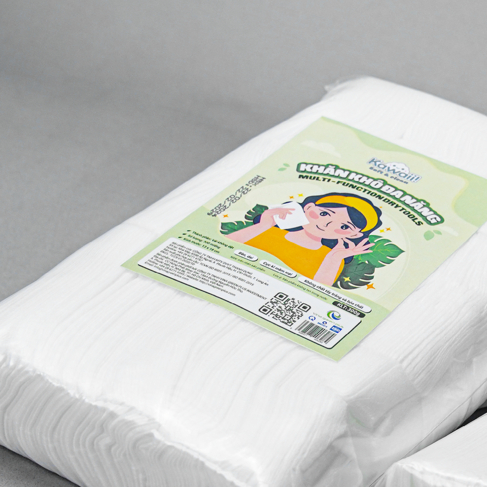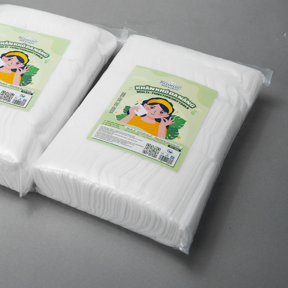 Kawaii 300 Sheet Multi-Purpose Dry Wipes 180x130mm Non-Woven Fabric Gentle Personal Care Household Cleaning Made in Vietnam