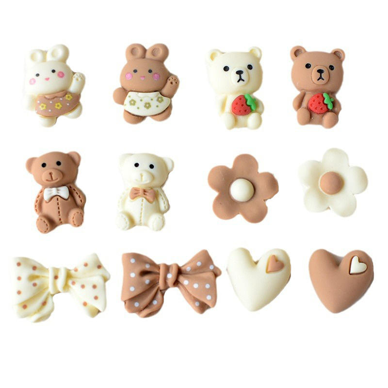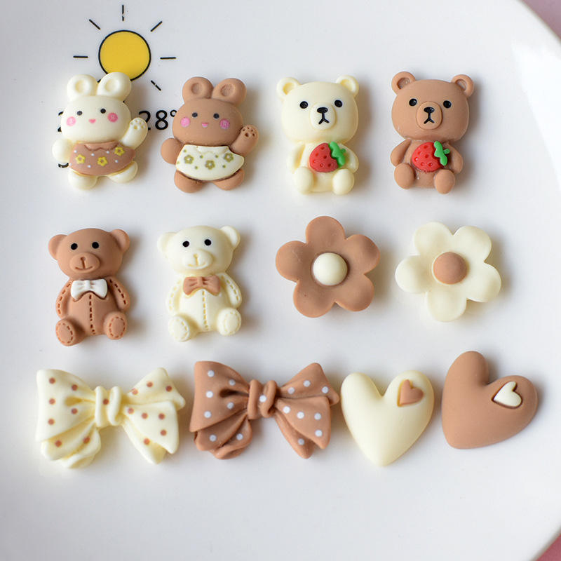 Kawaii Bear Charms Resin Figurines Cute Bow Angel Milk Tea Color Phone Case Embellishment Jewelry Making DIY Christmas Model