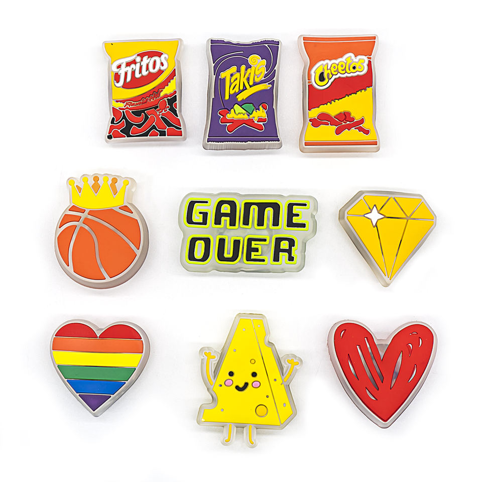 Kawaii luminoso PVC personalizzato disegni animali da gioco scarpe LED Charms Custom lettere DIY accessori per scarpe sportive per bambini Halloween