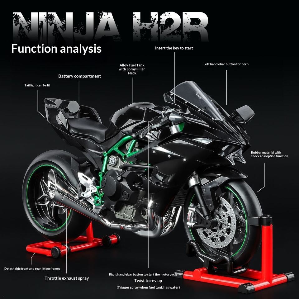 Modello in scala esatta: Fornisce una rappresentazione accurata in scala 1:9 della Kawasaki H2R, ideale per i collezionisti e gli appassionati.