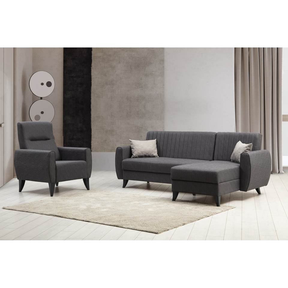 Set divano ad angolo l con base di stoccaggio Kayra Alkon + poltrona