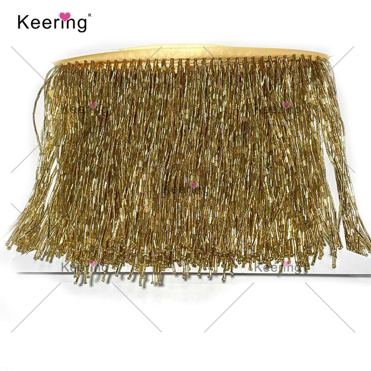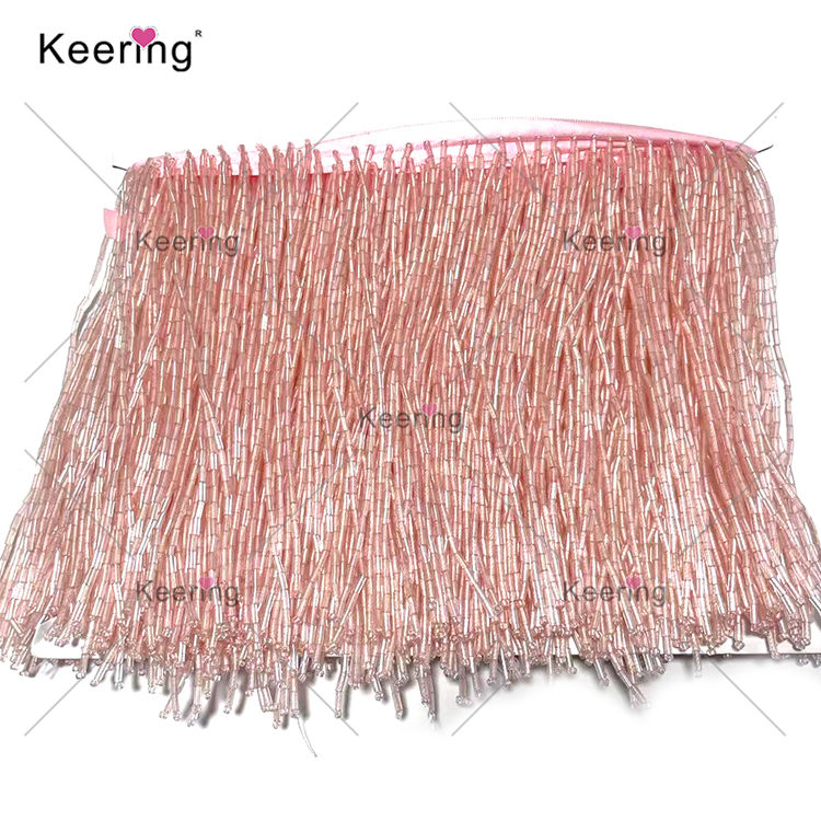 Keering 15 cm di larghezza stordente raso pesante perline di vetro rifiniture frangia di pizzo per accessori per la casa tessile danza nastro