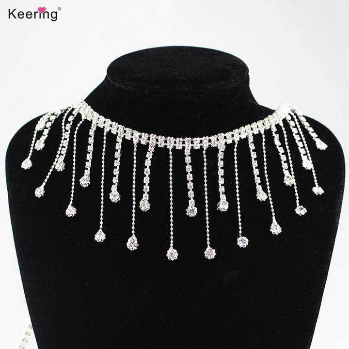Keering WNLC-138 cristallo tremolante nappa strass con frange rifiniture per cucire da sposa stivali per abbigliamento scarpe borse decorazione in vetro motivo