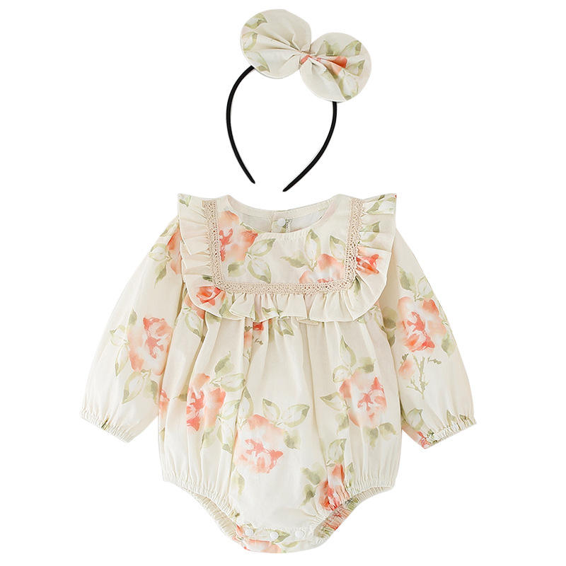 Keli Bear Baby Girl's 100% Cotton Spring and Autumn Infant Clothing Cute Printed Long Sleeve Romper Dress