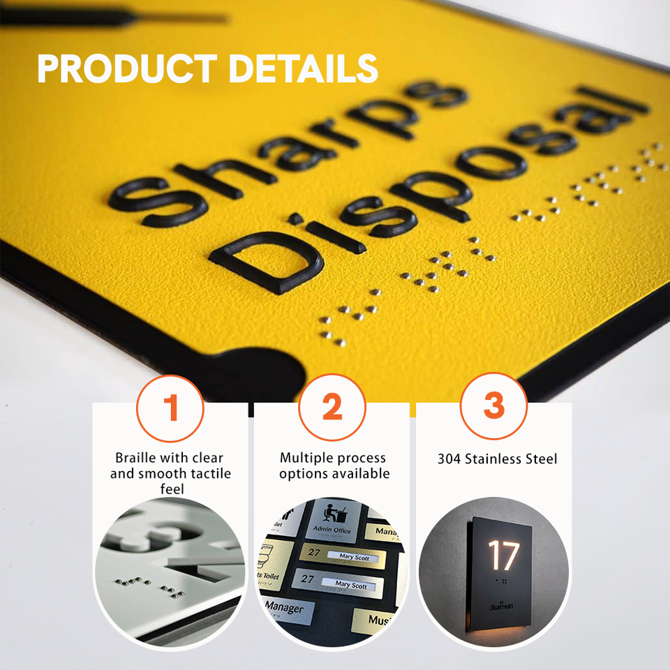 Nome del prodotto:Cartello con lettere in acciaio inossidabile Kelly segnalino per esterno in Braille