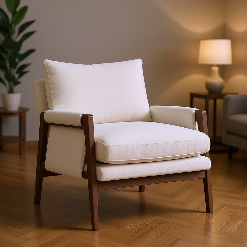 Mid Century Modern Velvet Accent Armchair White Wood Legs Solid Back Living Room Chair