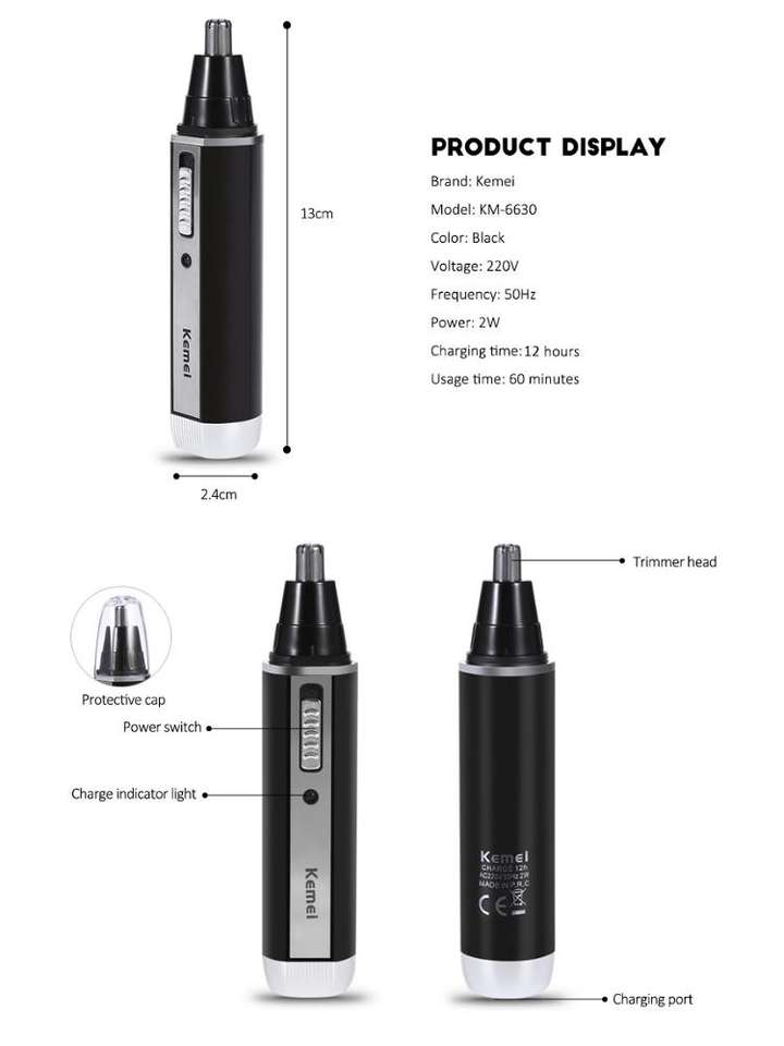 Keme-6630 4 in 1 naso capelli barba sopracciglio ricaricabile elettrico Trimmer naso elettrico rasoio orecchio tagliacapelli