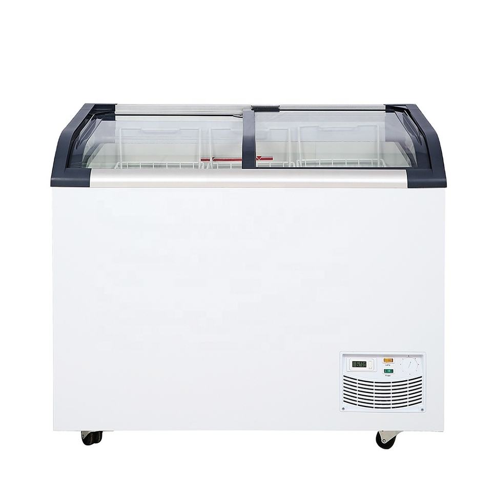 Kenkuhl 300L Ice Cream Freezer Small Display Popsicle Refrigerator With Curved Glass Top Door Chest Freezer