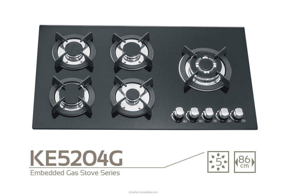 Keon fabbrica elettrodomestico cucina incasso vetro temperato nero 5 fuochi grande potenza stufa a Gas